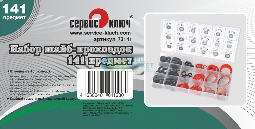Набор шайб-прокладок СЕРВИС КЛЮЧ состоит из 18 разных размеров, в количестве 141 предмет. Шайбы-прокладки используются для укрепления и герметизации болтовых соединений. Они найдут свое применение в автомобильной сфере, сантехнической и при других монтажных работ.