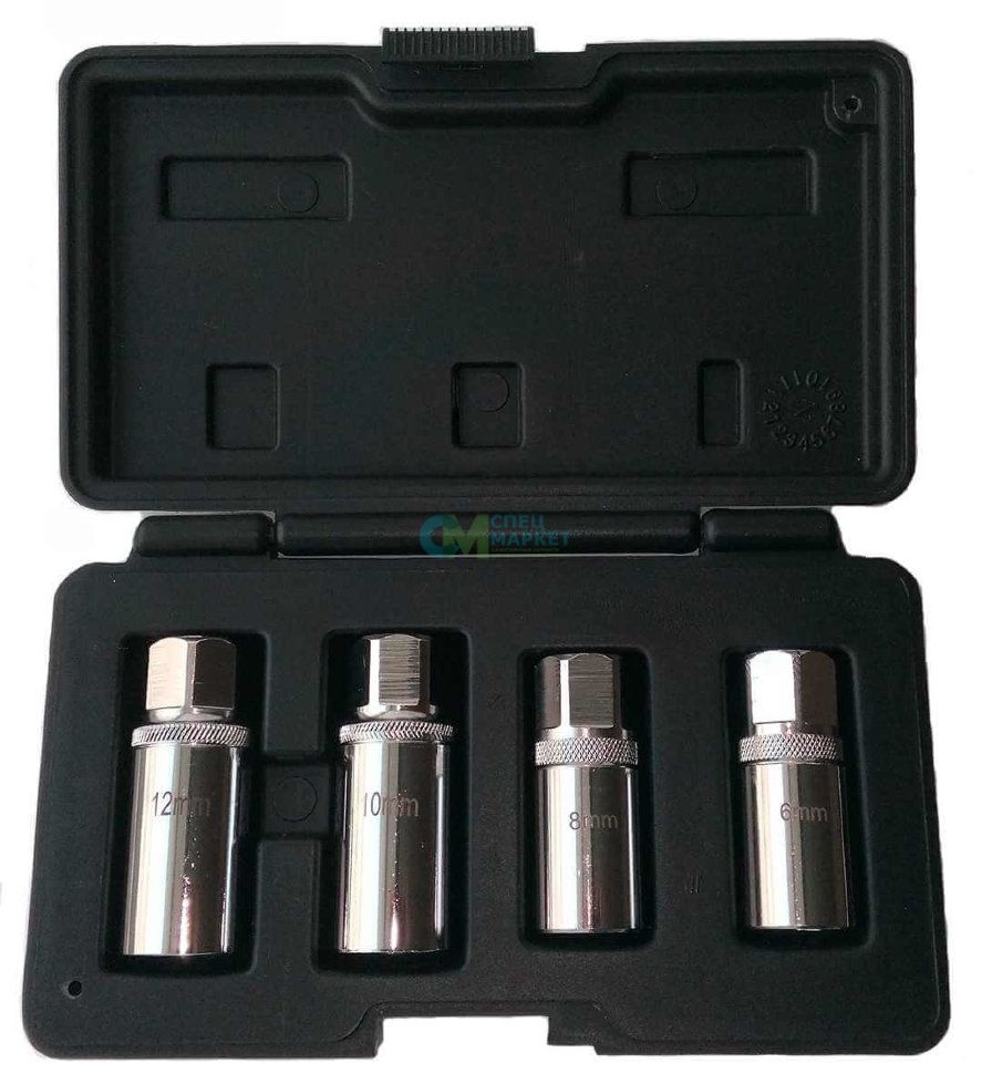 Набор шпильковертов включает в себя четыре шпильковерта разных размеров: 6, 8, 10 и 12 мм. Они подходят для извлечения крепежа с резьбой от М6 до М12. Шпильковерты изготовлены из высококачественной стал, которая обеспечивает долговечность и надёжность изделия. Набор поставляется в пластиковом кейсе для удобства хранения и транспортировки.