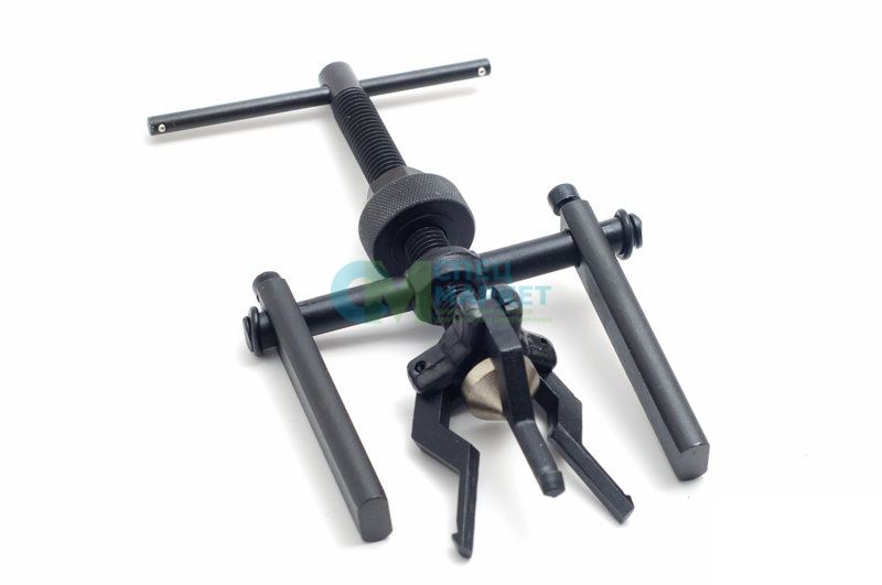 Инструмент состоит из двух частей: регулируемых «лапок» (длиной 60 и 90 мм), которые позволяют работать с подшипниками диаметром от 12 до 38 мм, и рукоятки с резьбой, которая служит для приложения давления и безопасного извлечения подшипника. Рабочий винт имеет метрическую резьбу с малым шагом, изготовленную методом накатки. Съёмник снабжён конусным фиксатором положения лапок с системой регулировки положения для надёжного захвата демонтируемой детали.