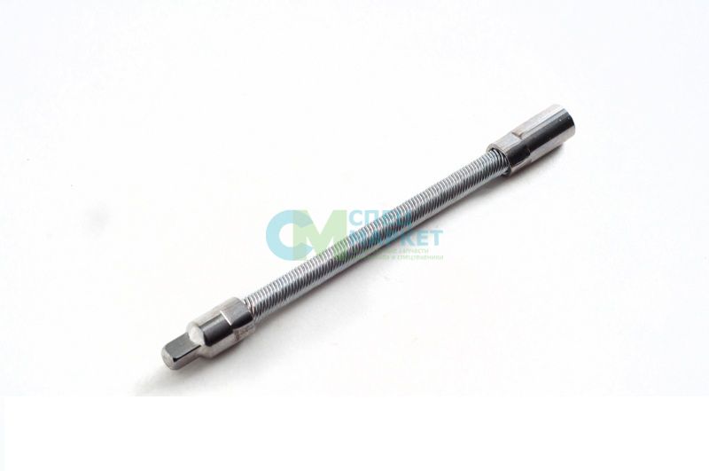 Удлинитель представляет из себя гибкий стержень пружинной конструкции, изготовлен методом холодного штампа из хром-ванадиевой стали (Cr-V) и закален до твердости не менее 39 HRC. Нанесено хромированное покрытие с матовым эффектом что защищает инструмент от коррозии. Имеется подпружиненный шарик для более надежного удержания головки. Посадочный квадрат 1/4 дюйма. Длина инструмента – 145 мм, ширина - 80 мм. Весит инструмент немного, всего - 60 грамм.